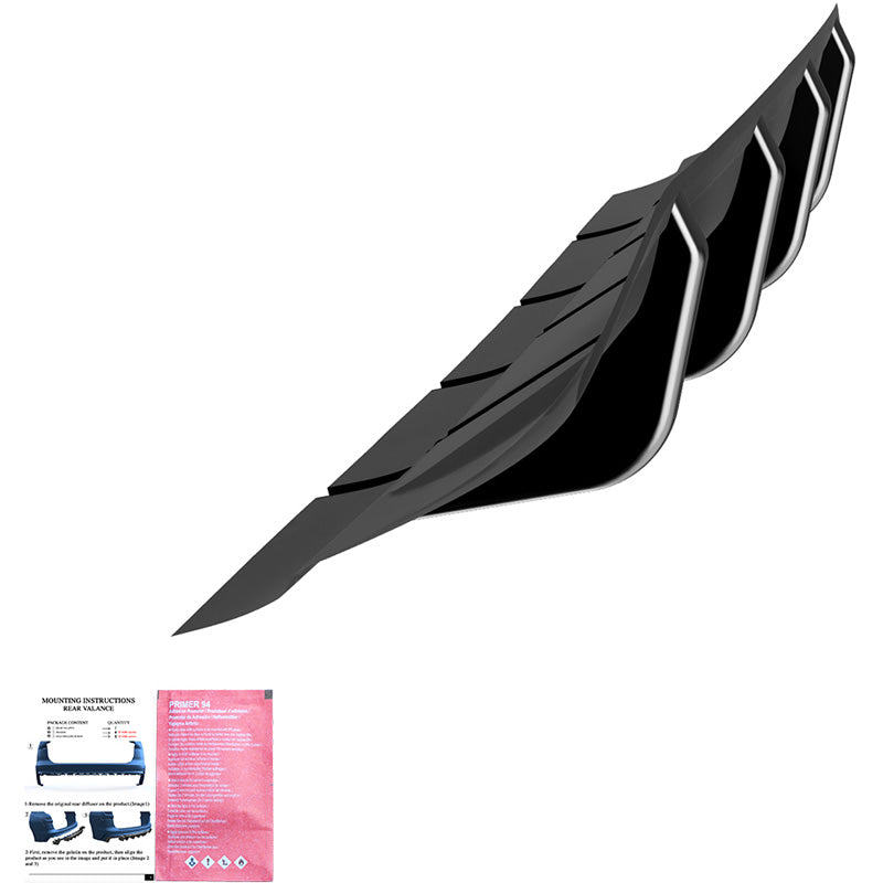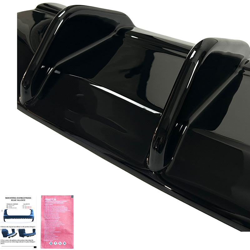 Add a touch of sophistication and style to your rear bumper with our rear diffuser. This sporty upgrade not only improves the aesthetics, but also ensures that your vehicle stands out on the road and makes a strong statement. The rear valance comes in a glossy black finish that you can easily paint if you prefer.