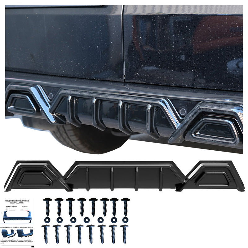 Forvandl din VW Transporter T7 eller Ford Transit Custom med OneWay's bagkofanger diffuser. Denne diffuser i glossy sort tilføjer et sporty og stilfuldt udtryk til bilens bagende, samtidig med at den sikrer, at du skiller dig ud på vejen.