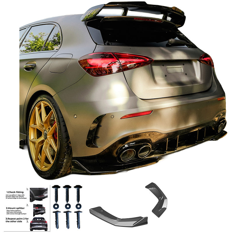 Oneway Rear Side Diffusors suitable for Mercedes A-Class (W177) A45 S Aero Pack 2019-2023 & FL 2023- - Gloss black