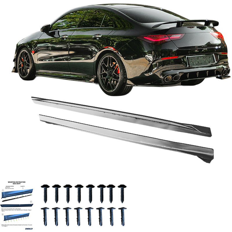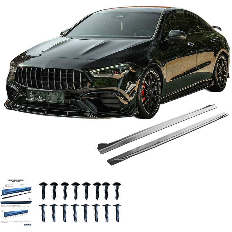 Oneway Set Side Skirts suitable for Mercedes CLA (C118/X118) Coupe/Shooting Brake CLA35/CLA45 AMG 2019-2023 - Gloss black