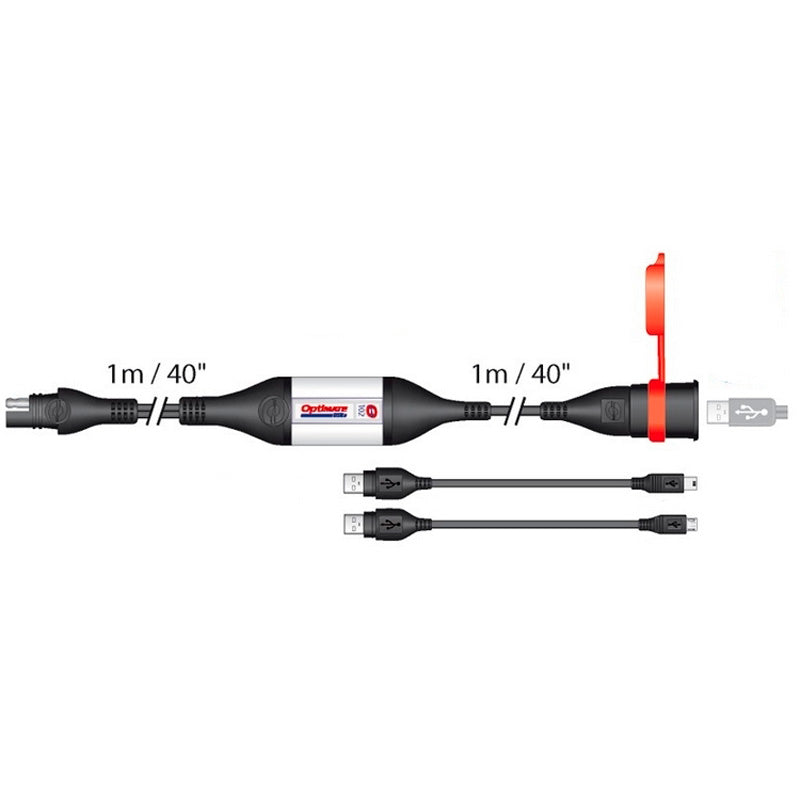 Der Optimate USB Kabelsatz extra lang ermöglicht es Ihnen, Ihr Mobiltelefon, GPS, Kamera und Tablet bequem von Ihrem witterungsbeständigen Ladegerät an Ihrem Motorrad oder bis zu 80/200 cm entfernt über eine 12V-Versorgung aufzuladen. Genießen Sie die Freiheit, Ihre Geräte überall zu laden, ohne sich um die Entfernung sorgen zu müssen.