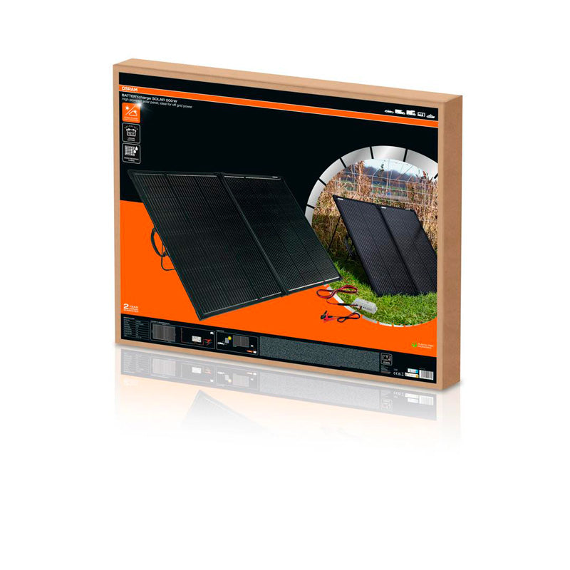 OSRAM BATTERYcharge SOLAR 200W kombinerer funktionalitet og holdbarhed, hvilket gør det til et fremragende valg for dem, der ønsker at nyde friheden ved off-grid liv.