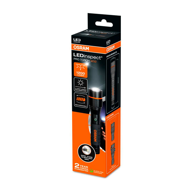 Osram, LEDinspect® PRO TORCH 1200 - Robust lommelygte, 1200 Lumen, 5 lysindstillinger
