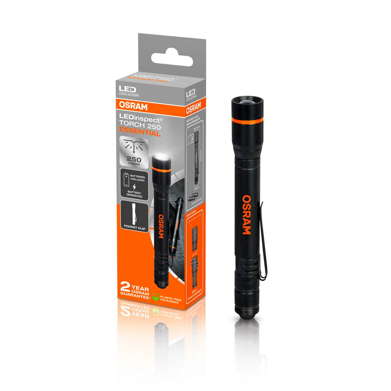 OSRAM LEDinspect® TORCH 250 er et essentielt værktøj til værksteder, garagearbejde og brug på farten.