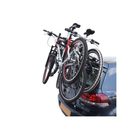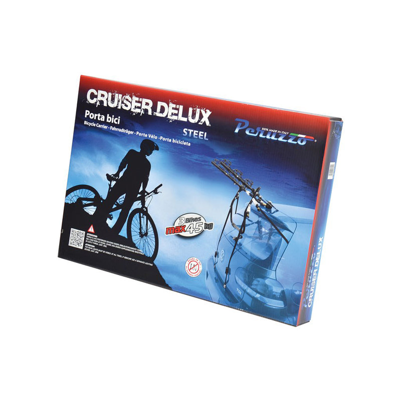Der Cruiser Delux Heckfahrradträger verfügt über ein Fahrradverriegelungssystem mit Stoßdämpferschutz und ist bereits fertig montiert und extrem kompakt. Er stützt sich teilweise auf die Heckscheibe Ihres Autos, was eine einfache Handhabung gewährleistet.