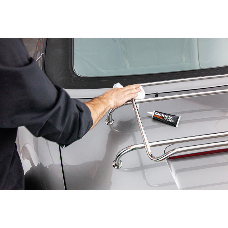 Erfrischen Sie den Look Ihres Autos, Fahrrads, Schmucks oder anderer Metalloberflächen in Ihrem Haushalt schnell und einfach mit dem Quixx Metall Restaurations-Set. Bei Fragen oder für weitere Informationen besuchen Sie bitte carlab.de und kontaktieren Sie uns. Wir helfen Ihnen gerne weiter.