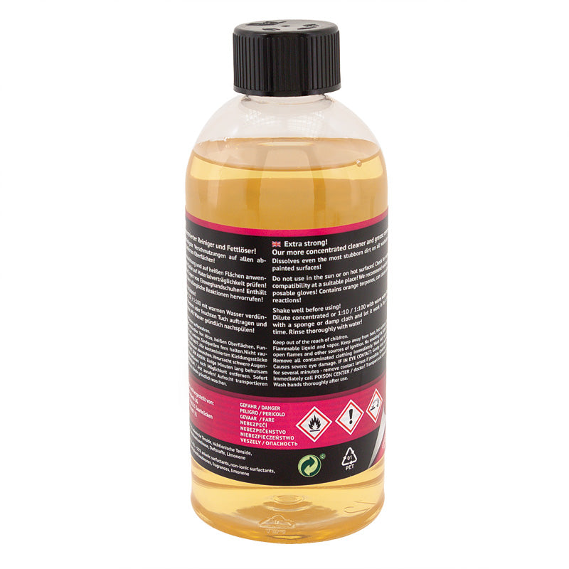 - Extra stark: Entfernt Fett-, Ruß- und Ölablagerungen sowie Teer- und Farbreste.