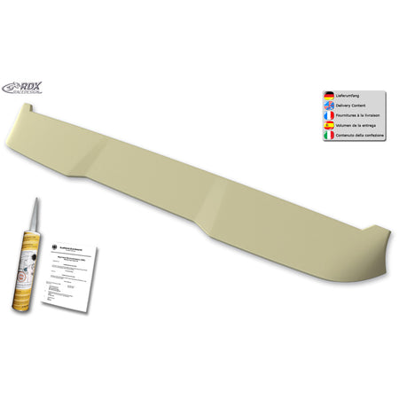 Tagspoiler fra RDX Racedesign, der passer til Citroën Jumper, Fiat Ducato, Peugeot Boxer, RAM ProMaster, Opel Movano og Toyota Proace Max H3. Denne spoiler er designet med fokus på både funktionalitet og æstetik, og den er fremstillet af høj kvalitet PU-Rim, hvilket sikrer holdbarhed og lang levetid.