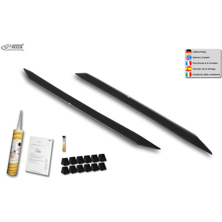 RDX Side Skirts 'Slim' are made of high-quality ABS plastic in original equipment quality. They are supplied in a set of 2, with a glossy black finish. This means they are ready to be installed, or, if you wish, can be painted in a suitable colour first.