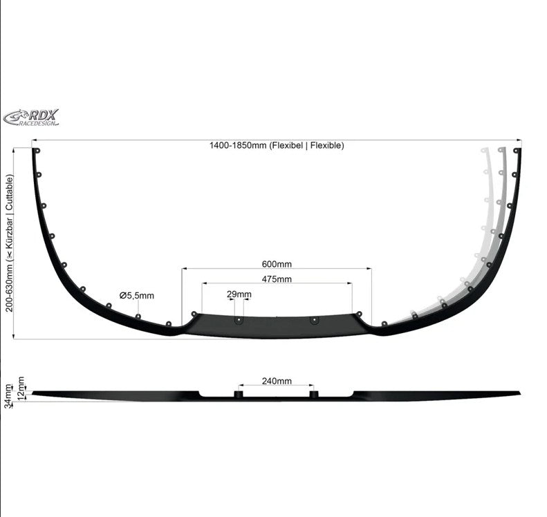 Verleihen Sie Ihrem Fahrzeug mit der RDX Universal Cup 2.0 Frontspoilerlippe eine sportliche Note