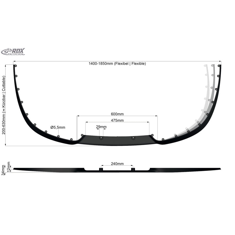 RDX Racedesign, RDX Universal Cup 2.0 Frontspoilerlippe/-Schwert - Flexibel - Schwarz (PU), PU-Rim, Mattschwarz