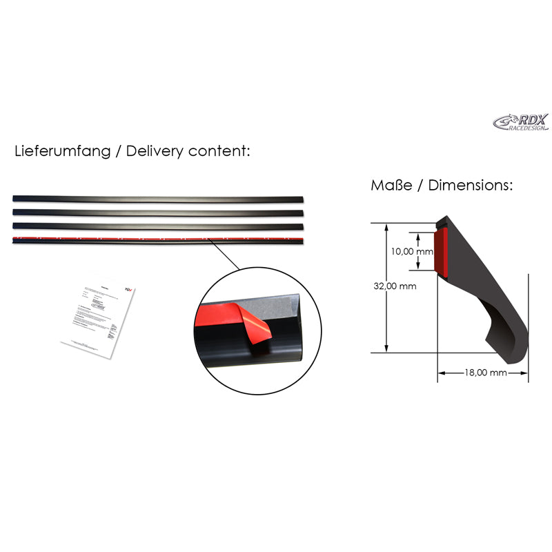 RDX Racedesign, RDX Universal Radlaufverbreiterungen Fender-X - Satz à 4 Stück je 150cm, PU-Rim, Mattschwarz