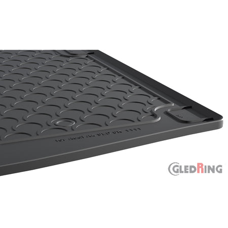 Die Kofferraumwanne wird aus hochwertigem, flexiblem Rubbasol gefertigt, einem von Gledring entwickelten Material, das zu den reinsten in der Automobilindustrie zählt. Sie ist langlebig, rutschfest und leicht zu reinigen. Mit einer 2 cm hohen Kante verhindert die Matte, dass Schmutz und Flüssigkeiten in den Innenraum gelangen. So können bis zu 10 Liter Flüssigkeiten zurückgehalten werden, was sie ideal für alle macht, die ihren Kofferraum häufig nutzen.