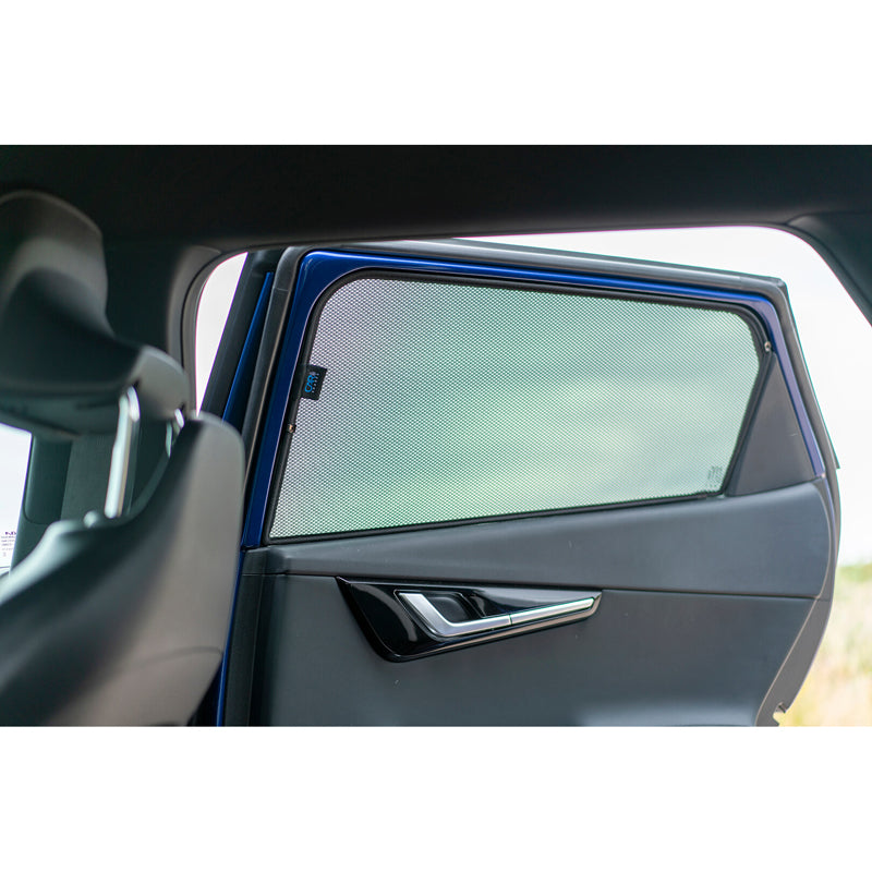 Die Satz Car Shades für die hinteren Türen des Kia EV6 (2021-) bieten optimalen Schutz vor Sonnenlicht und Hitze. Diese passgenauen Sonnenblenden sind ideal für sonnige Tage und lange Reisen, um den Komfort Ihrer Mitfahrer zu erhöhen. Sie sorgen für ein angenehmes Klima im Fahrzeuginneren und verleihen Ihrem Fahrzeug gleichzeitig ein stilvolles, diskretes Aussehen, das an getönte Scheiben erinnert.