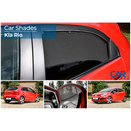 Die Satz Car Shades für die hinteren Türen Ihres Kia Rio (5-türer, Baujahre 2011-2016) bieten eine ideale Lösung, um Ihr Fahrzeug vor direkter Sonneneinstrahlung zu schützen. Diese speziell entwickelten Sonnenblenden sorgen für ein angenehmes Klima im Innenraum und erhöhen den Komfort für Ihre Mitfahrer, besonders an heißen Sommertagen oder auf langen Reisen.