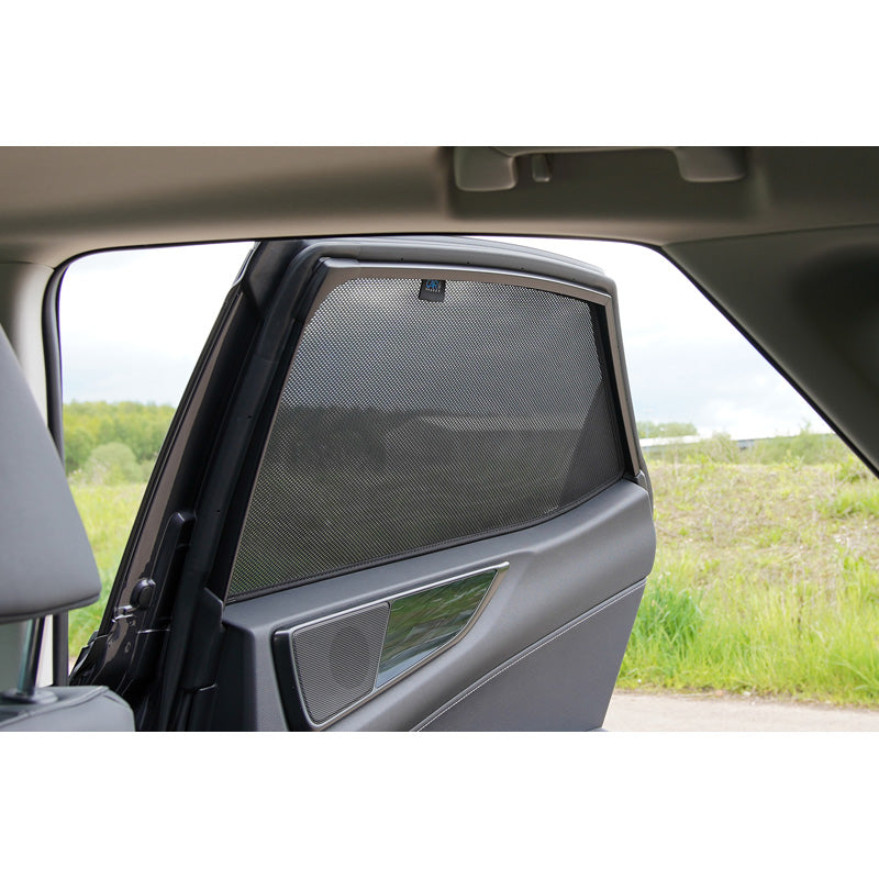 Jedes Set besteht aus zwei passgenauen Sonnenblenden für die hinteren Seitenscheiben. Dank des robusten Materials sind sie pflegeleicht und widerstandsfähig gegen Feuchtigkeit, Schmutz und Zigarettenasche.