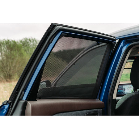 Jedes Set besteht aus zwei vorgefertigten Sonnenblenden, die eine perfekte Passform für die hinteren Seitentüren garantieren. Das widerstandsfähige Material ist schmutz- und feuchtigkeitsabweisend und lässt sich mühelos reinigen.
