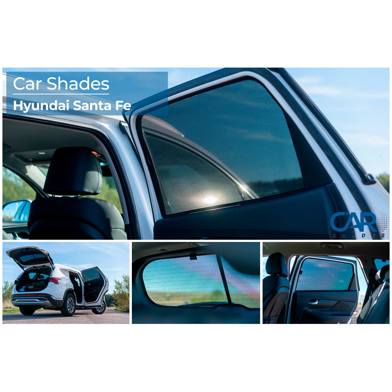 Die Satz Car Shades für den Hyundai Santa Fe IV (TM) 2018- bieten eine effektive Lösung, um den Innenraum Ihres Fahrzeugs vor direkter Sonneneinstrahlung zu schützen. Diese speziell entwickelten Sonnenblenden sind ideal für warme Sommertage, lange Reisen und sorgen für ein angenehmes Fahrerlebnis für alle Passagiere.