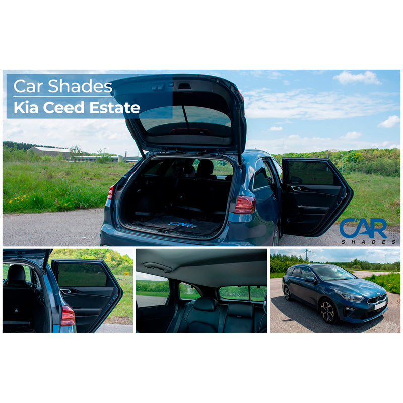 Die Satz Car Shades passend für Kia Cee'd (CD) SW Kombi 2018- bieten Ihnen einen effektiven Schutz vor Sonnenlicht und Hitze im Fahrzeuginnenraum. Diese speziell entwickelten Sonnenblenden sorgen für ein angenehmes Klima während Ihrer Fahrten und sind besonders nützlich an warmen Tagen oder auf langen Reisen. Mit ihrem ansprechenden Design verleihen sie Ihrem Fahrzeug zudem eine elegante, getönte Optik.