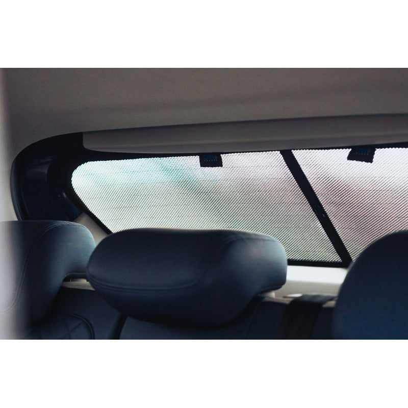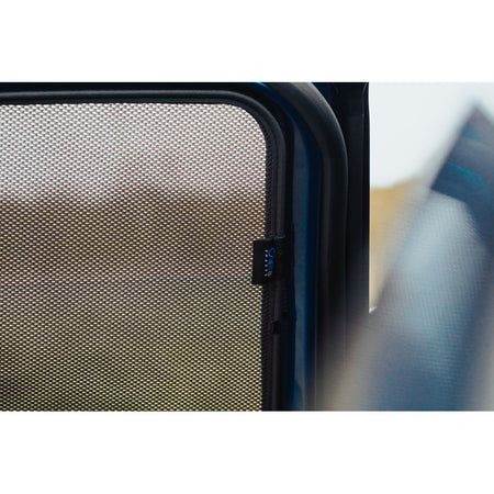 Jedes Set enthält vorgefertigte Sonnenblenden für alle Fenster hinter der B-Säule. Dank des robusten Materials sind die Blenden pflegeleicht und widerstandsfähig gegen Feuchtigkeit, Schmutz und Zigarettenasche.