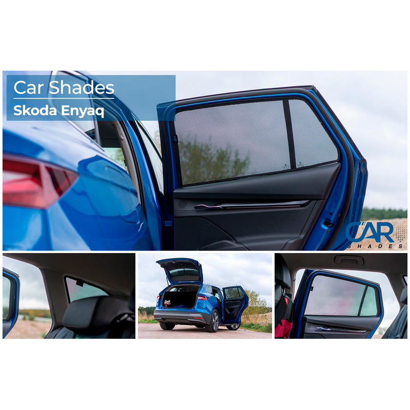 Die Satz Car Shades passend für Skoda Enyaq iV 2020- (exkl. Coupe) bieten Ihnen den perfekten Schutz vor direkter Sonneneinstrahlung und sorgen für ein angenehmes Klima im Fahrzeuginnenraum. Diese speziell entwickelten Sonnenblenden sind ideal für sonnige Tage, lange Reisen und für den Komfort Ihrer Passagiere. Das hochwertige, speziell gewebte Material verleiht Ihrem Fahrzeug zudem eine elegante, diskrete Optik, die an getönte Scheiben erinnert.