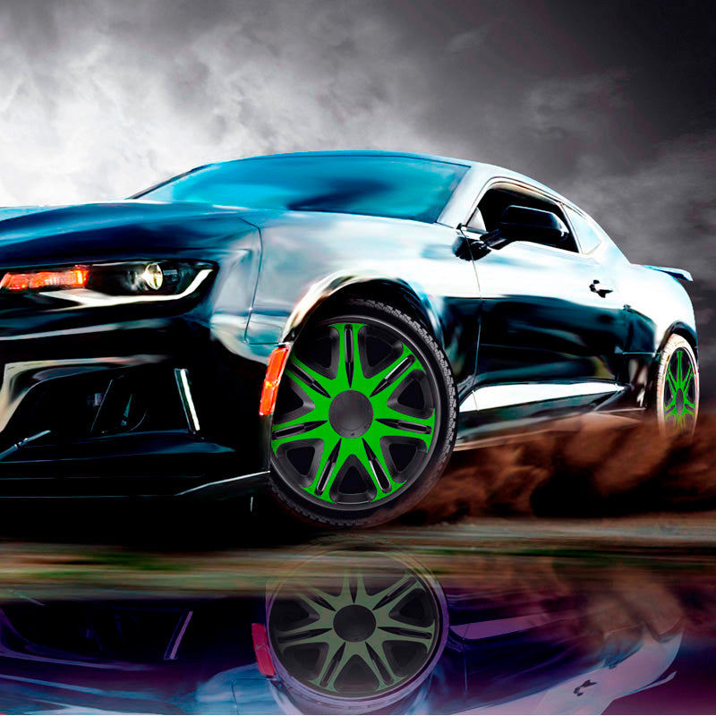 J-Tec, Satz Radzierblenden Nascar 14-Zoll Schwarz/Grün, ABS, Grün, Schwarz