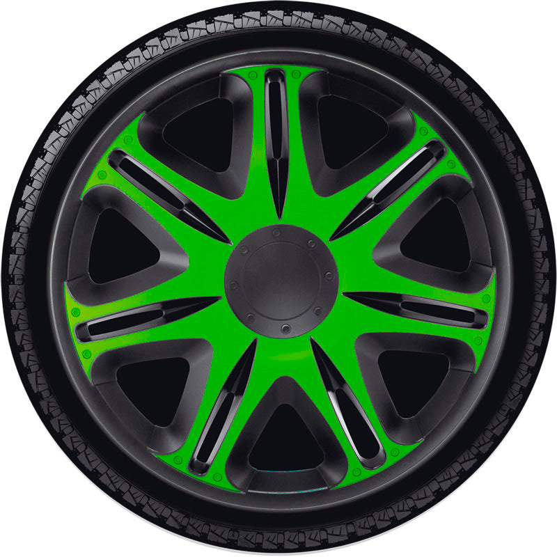 J-Tec, Satz Radzierblenden Nascar 15-Zoll Schwarz/Grün, ABS, Grün, Schwarz