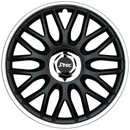 J-Tec, Satz Radzierblenden Orden R 13-Zoll Schwarz/Silber + Chrom Ringe, ABS, Chrom, Silber, Schwarz