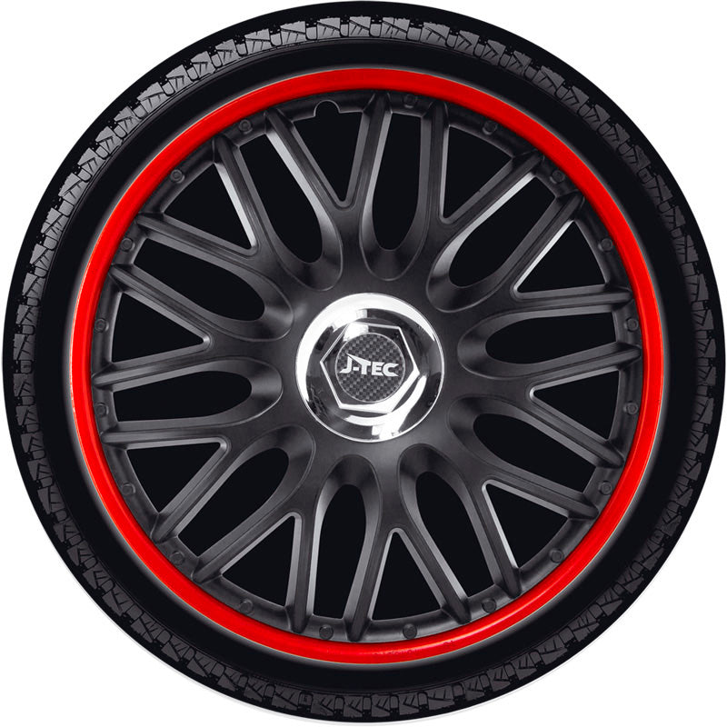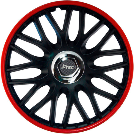 J-Tec, Satz Radzierblenden Orden R 14-Zoll Schwarz/Rot + Chrom Ringe, ABS, Chrom, Rot, Schwarz