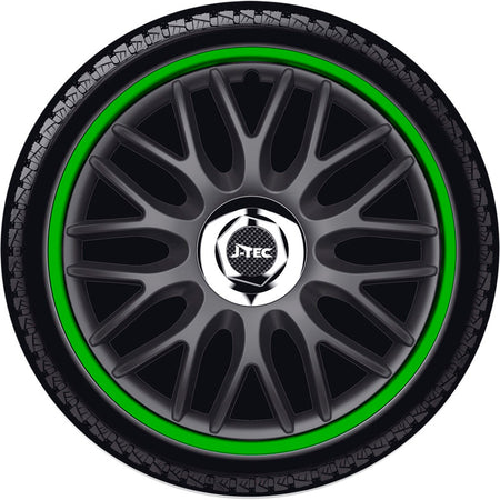 J-Tec, Satz Radzierblenden Orden R 15-Zoll Schwarz/Grün + Chrom Ringe, ABS, Chrom, Grün, Schwarz