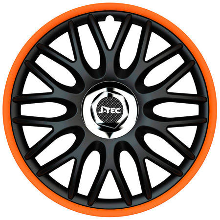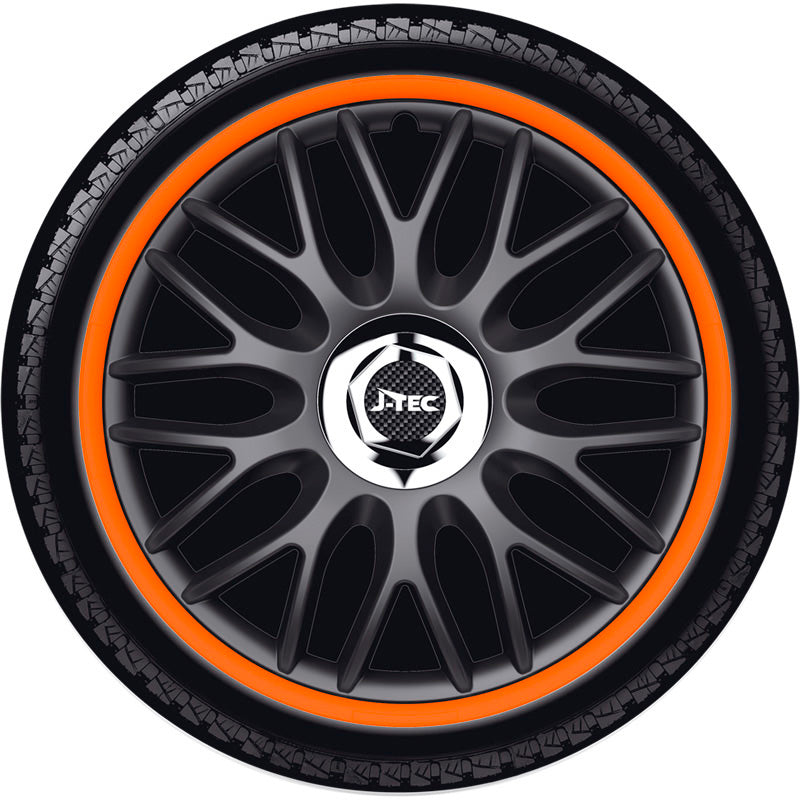 J-Tec, Satz Radzierblenden Orden R 15-Zoll Schwarz/Orange + Chrom Ringe, ABS, Chrom, Orange, Schwarz
