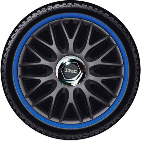 J-Tec, Satz Radzierblenden Orden R 16-Zoll Schwarz/Blau + Chrom Ringe, ABS, Blau, Chrom, Schwarz