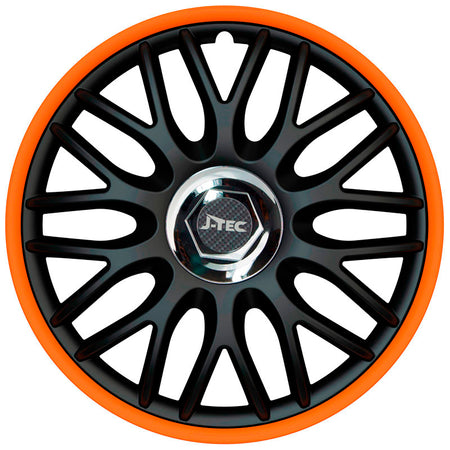 J-Tec, Satz Radzierblenden Orden R 16-Zoll Schwarz/Orange + Chrom Ringe, ABS, Chrom, Orange, Schwarz