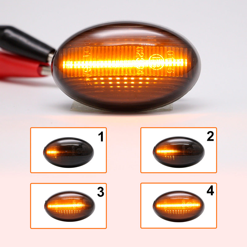 Mit diesem Set von LED Seitenblinkern in Smoke-Optik bringen Sie frischen Wind in das Design Ihres Fahrzeugs. Die dynamischen Lauflichter sorgen für eine zeitgemäße und stilvolle Signalgebung, die an die neuesten Modelle erinnert.