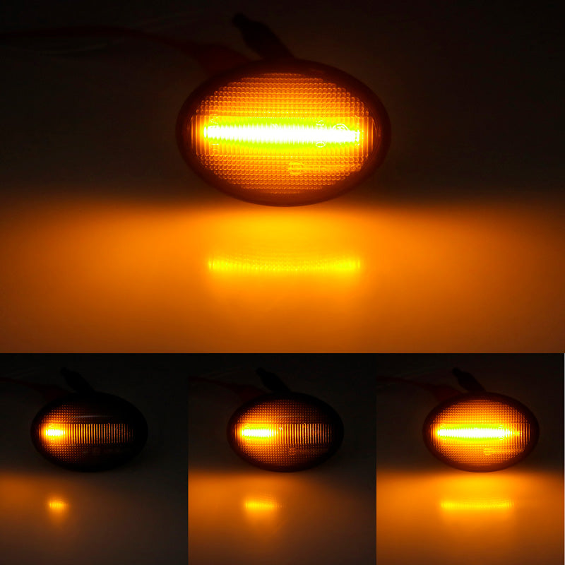Die Satz LED Seitenblinker im Smoke-Design sind die perfekte Ergänzung für Ihren Mini R55 Clubman, R56, R57 Cabrio, R58 Coupe oder R59 Roadster. Mit ihrem dynamischen Lauflicht sorgen sie für eine zeitgemäße Optik und erhöhen die Sichtbarkeit im Straßenverkehr.