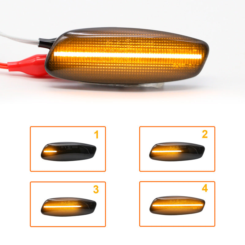 Mit diesem Satz LED-Seitenblinkern für verschiedene Peugeot-Modelle setzen Sie auf ein zeitgemäßes und dynamisches Erscheinungsbild. Die Smoke-Linse sorgt für einen eleganten Look, während das dynamische Lauflicht das Blinken auf eine neue Ebene hebt. Diese Seitenblinker sind die perfekte Ergänzung für Ihr Fahrzeug und unterstreichen dessen Individualität.