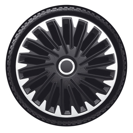 AutoStyle, Satz Radzierblenden Quantum Pro 15-Zoll Silber/Schwarz + Chrom Ringe, ABS, Silber, Schwarz