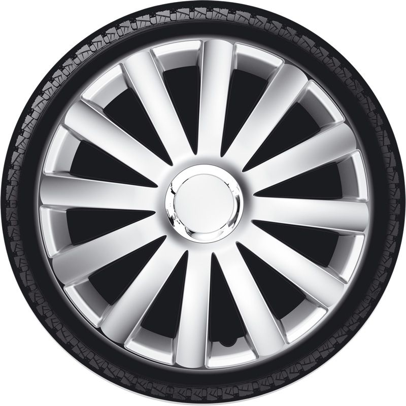 AutoStyle, Satz Radzierblenden Spyder 13-Zoll Silber + Chrom Ringe, ABS