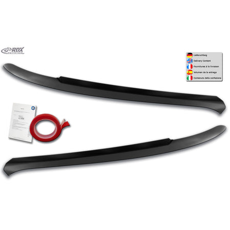 Die Blenden werden in elegantem Schwarz geliefert, können jedoch auch in der Farbe Ihres Fahrzeugs lackiert werden, um eine nahtlose Integration zu gewährleisten. Die Montage erfolgt unkompliziert mit dem beiliegenden Klebeband, und das Produkt verfügt über eine TÜV-Freigabe.