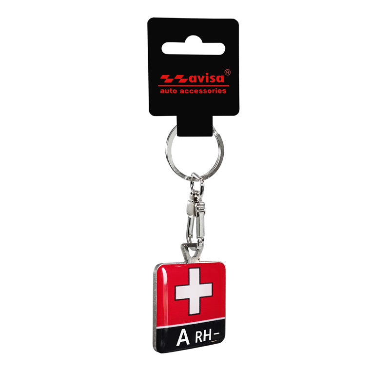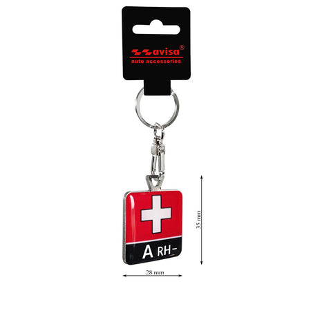 Avisa, Schlüsselanhänger aus Edelstahl - Blood Type A RH-, Rot, Schwarz