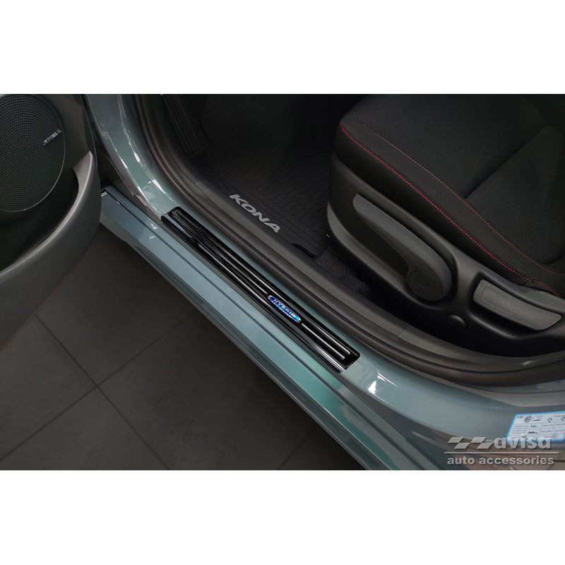 Avisa, Schwarz Edelstahl Einstiegsleisten passend für Hyundai Kona 2017-2020 & FL 2020-2023 Hybrid - 4-teilig, Blau, Inox, Schwarz