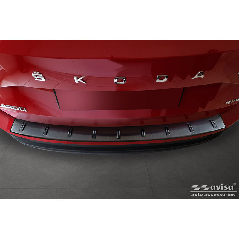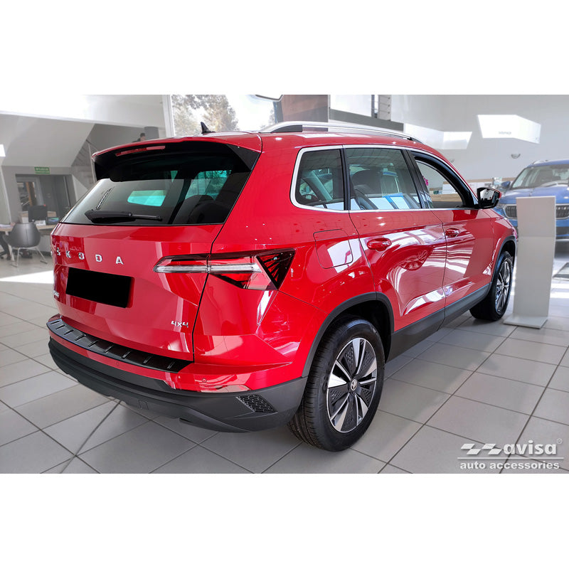 Avisa, Schwarz Edelstahl Heckstoßstangenschutz passend für Skoda Karoq (NU7) Facelift incl. Sportline 2022- STRONG EDITION, PU-Rim, Edelstahl