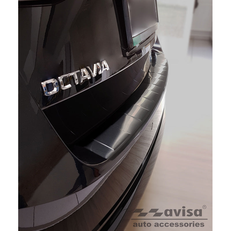 Avisa, Schwarz Edelstahl Heckstoßstangenschutz passend für Skoda Octavia IV Kombi 2020-2024 & FL 2024- (inkl. RS, exkl. Scout) Ribs