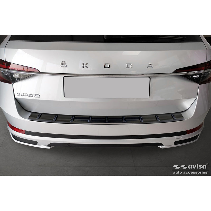 Avisa, Schwarz Edelstahl Heckstoßstangenschutz passend für Skoda Superb III Combi 2015-2023 inkl. Scout STRONG EDITION, PU-Rim, Edelstahl