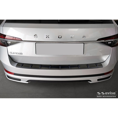 Dieser Ladekantenschutz ist speziell für die Skoda Superb III Combi Modelle von 2015 bis 2023, einschließlich der Scout 'STRONG EDITION', konzipiert und passt sich perfekt der Kontur Ihrer Stoßstange an.