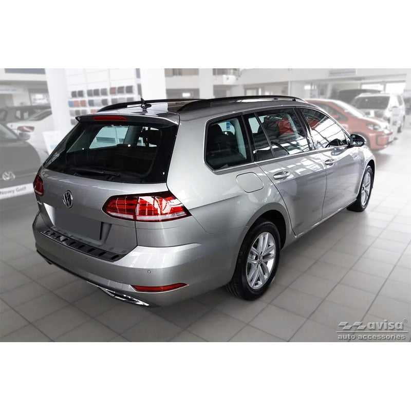 Avisa, Schwarz Edelstahl Heckstoßstangenschutz passend für Volkswagen Golf VII Variant Facelift 2017-2019 (inkl. R-Line) STRONG EDITION, PU-Rim, Edelstahl