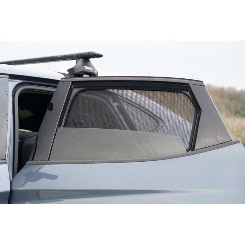 They cover each window completely, protecting you and your car from harmful UV rays, insects and prying eyes. It's a great alternative to window film, sun blinds and expensive privacy glass because they combine everything in one. Because these shades attach to the window frame with clips, you can roll down the window while the shade stays in place. This lets you enjoy a cool breeze while driving.