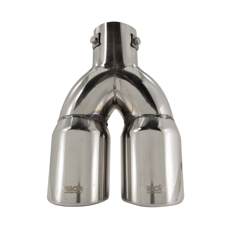 Simoni Racing, Auspuffblende Doppel Rund/Schräg Edelstahl - Ø76xL230mm - Anschluß ->58mm, Inox