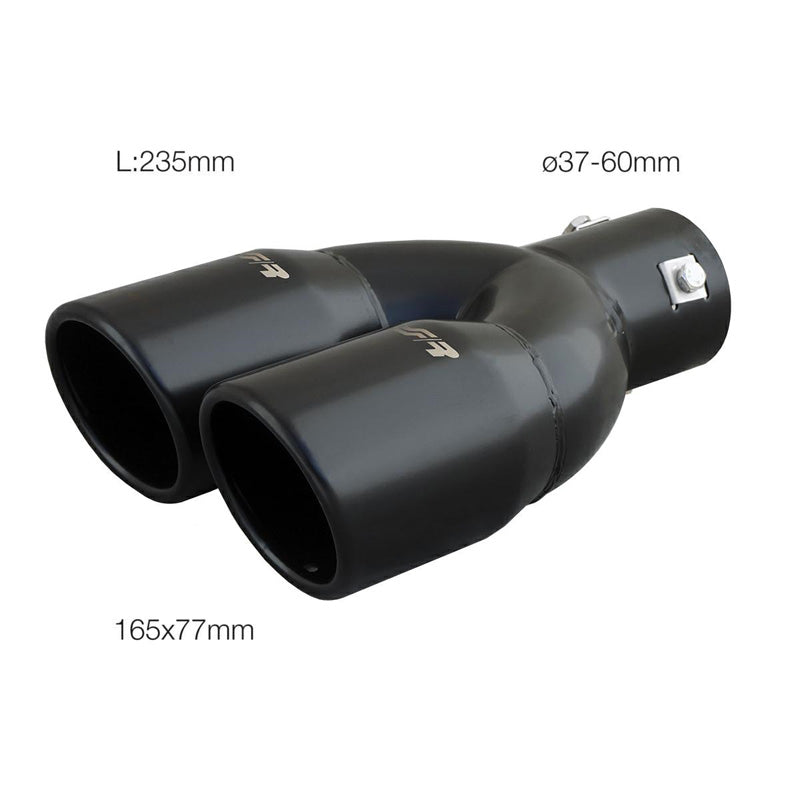 Simoni Racing, Auspuffblende Doppel Rund/Schräg Edelstahl Schwarz - Ø76xL230mm - Anschluß ->58mm