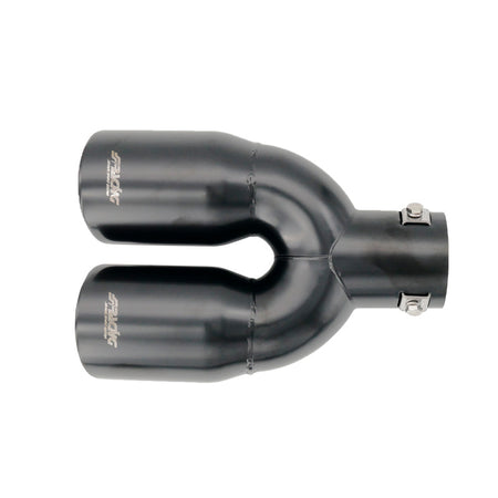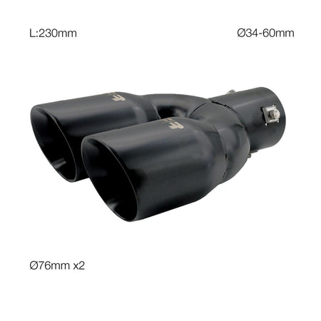 Simoni Racing, Auspuffblende Doppelrunde/Schräg Edelstahl Schwarz - 2xØ76xL240mm - Anschluß 34-60mm